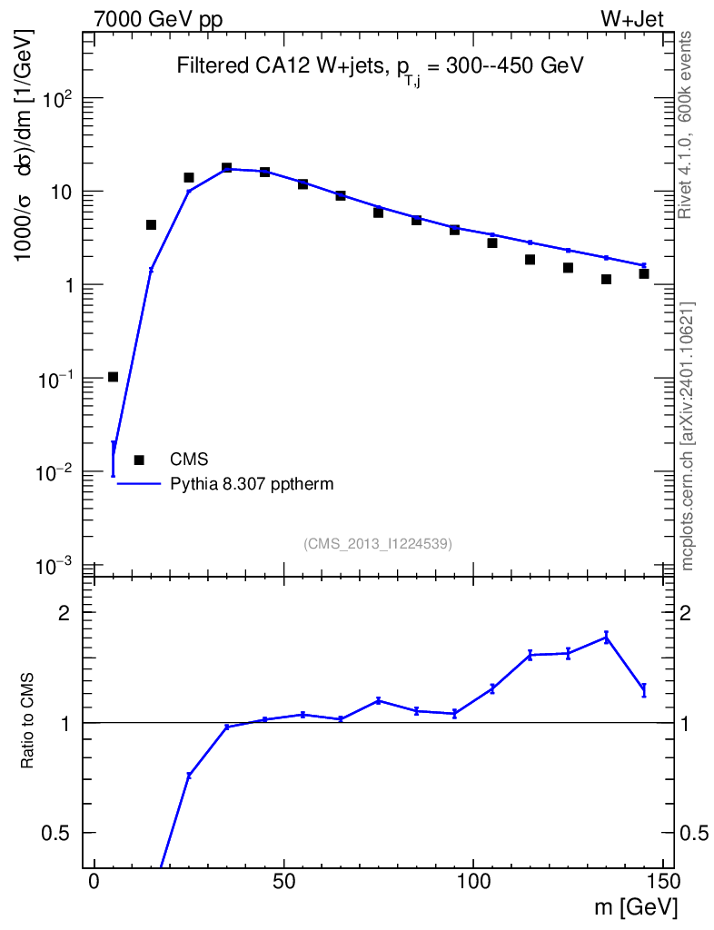 Lines: data, pythia8 8.307 pptherm | compare with other tunes