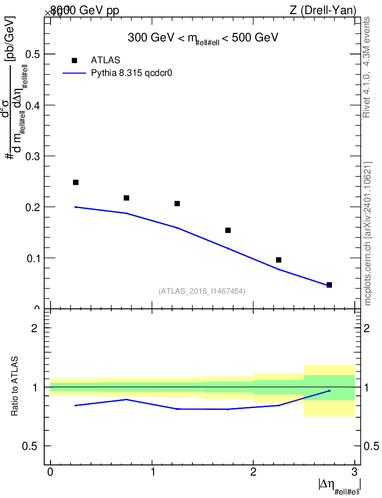 Plot of ll.deta in 8000 GeV pp collisions