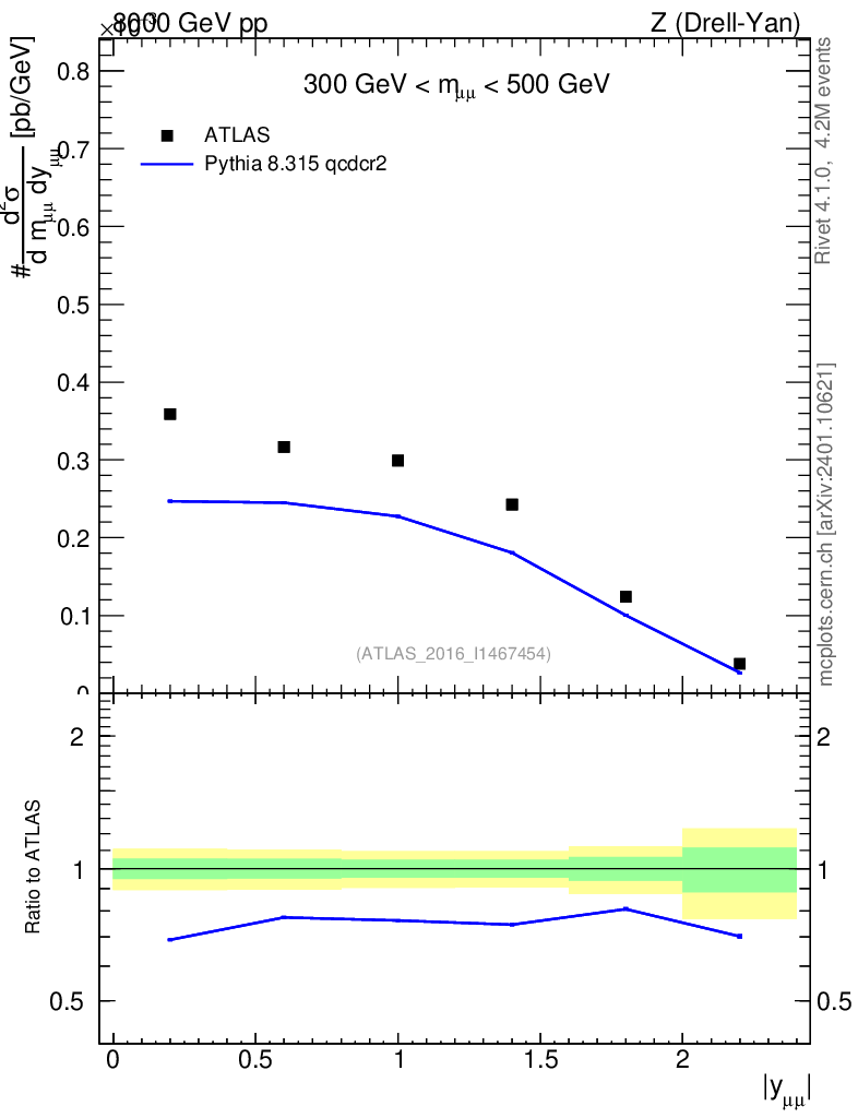 Lines: data, pythia8 8.315 qcdcr2 |