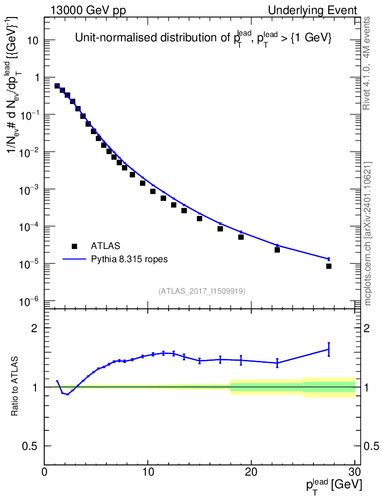 Lines: data, pythia8 8.315 ropes |