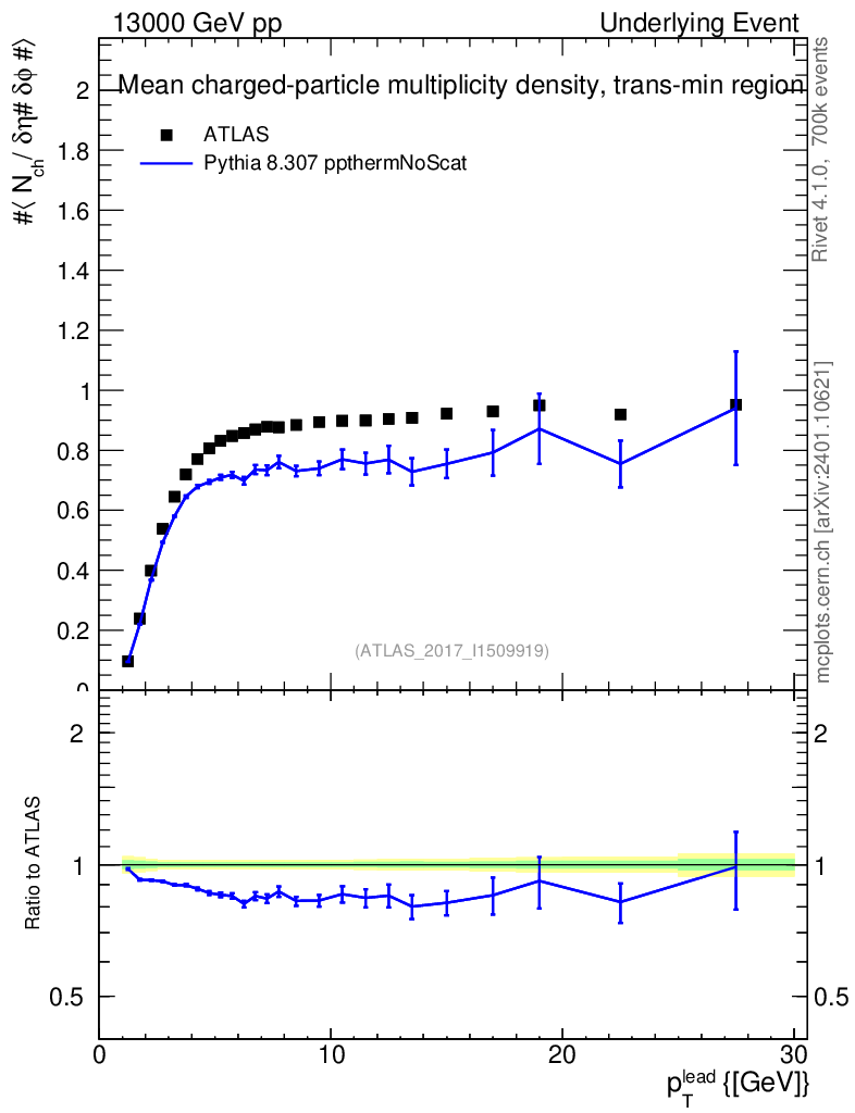 Lines: data, pythia8 8.307 ppthermNoScat |