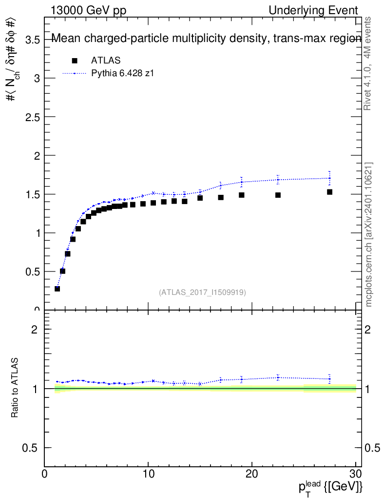 Lines: data, pythia6 6.428 z1 |