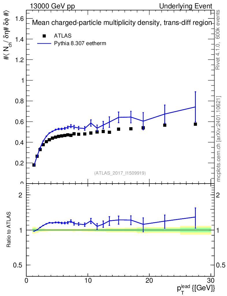 Lines: data, pythia8 8.307 eetherm |