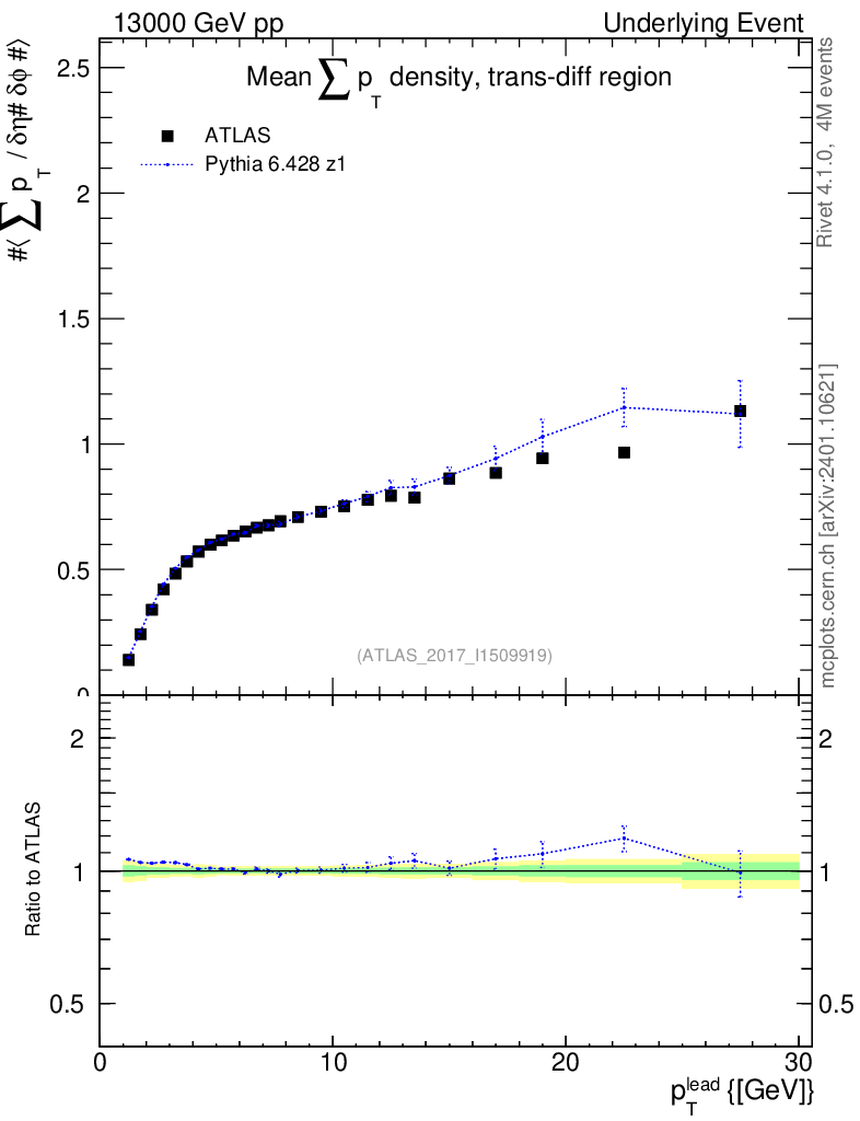 Lines: data, pythia6 6.428 z1 |