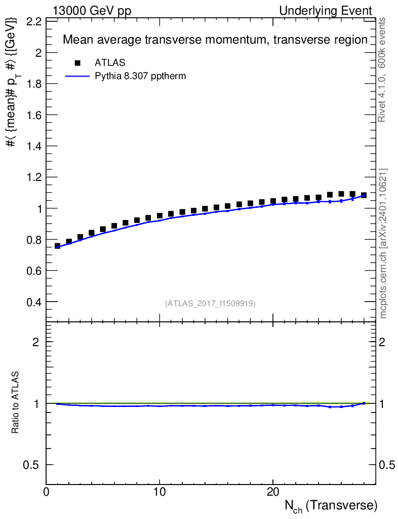 Lines: data, pythia8 8.307 pptherm |