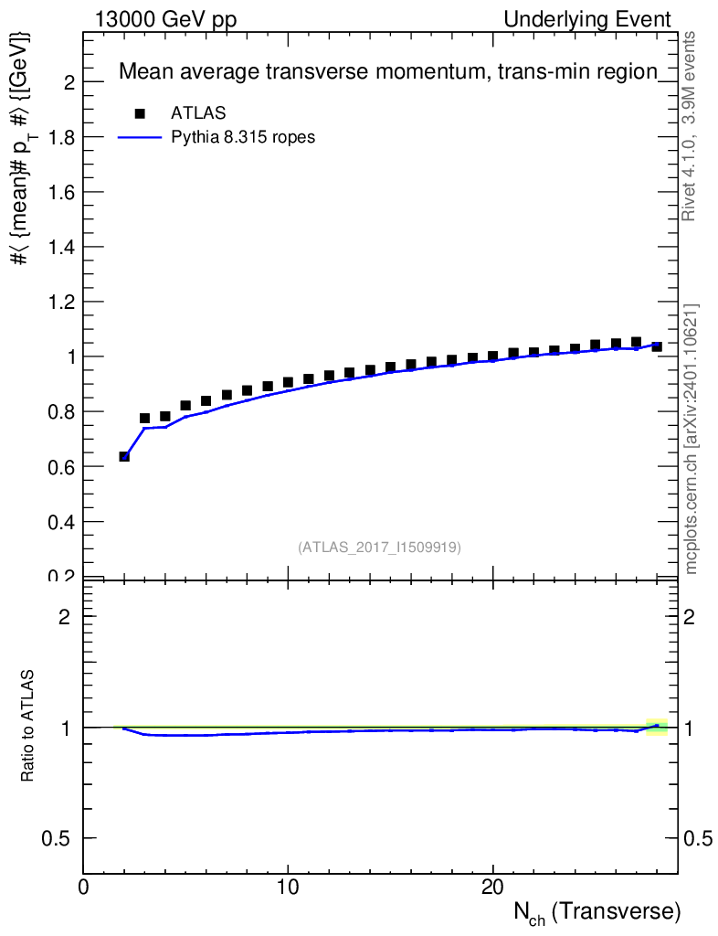 Lines: data, pythia8 8.315 ropes |
