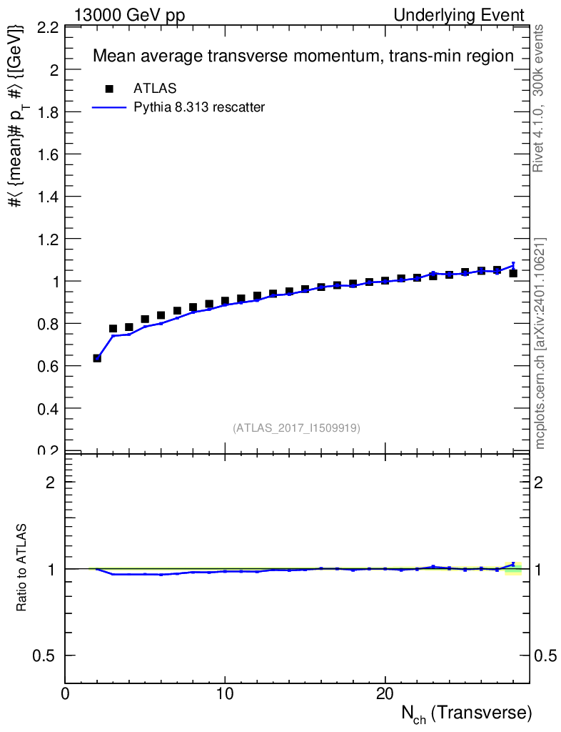 Lines: data, pythia8 8.313 rescatter |