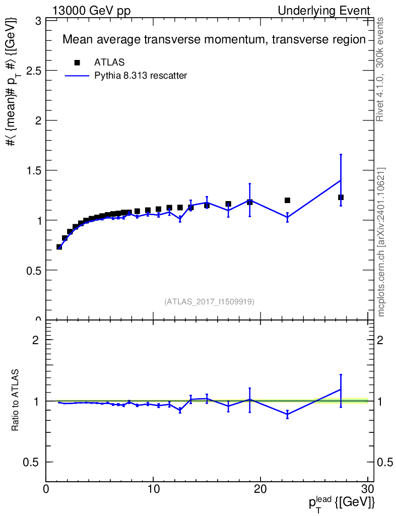 Lines: data, pythia8 8.313 rescatter |