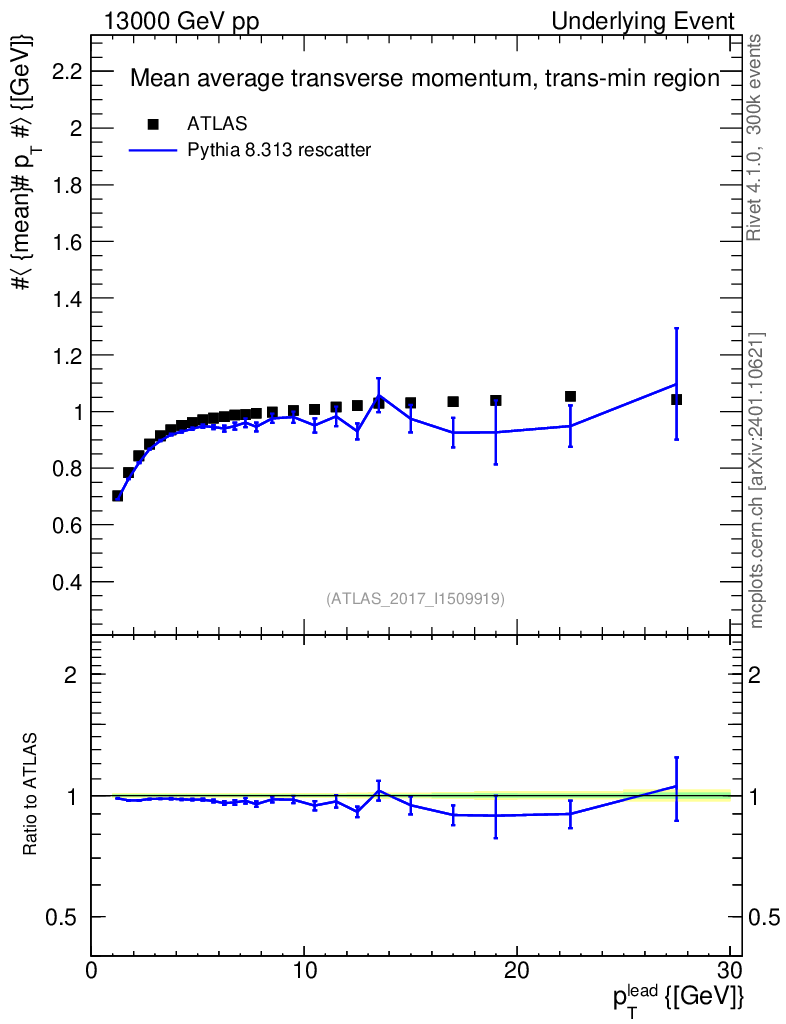 Lines: data, pythia8 8.313 rescatter |