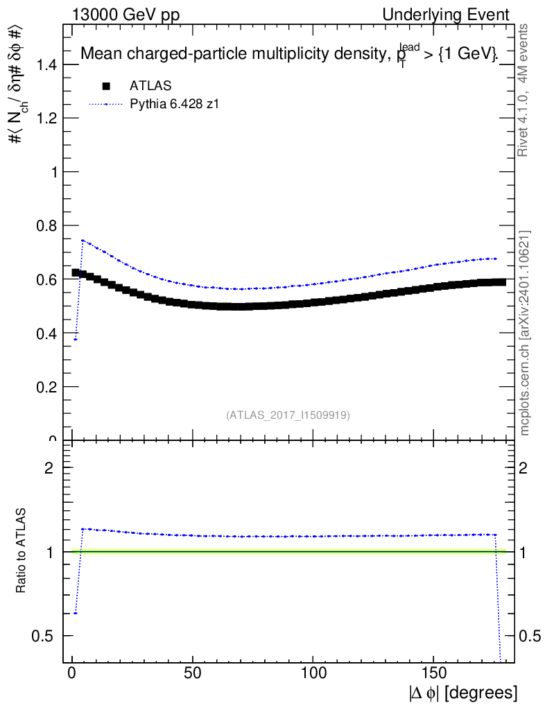 Lines: data, pythia6 6.428 z1 |
