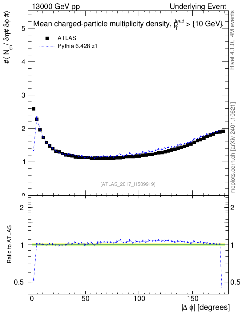 Lines: data, pythia6 6.428 z1 |