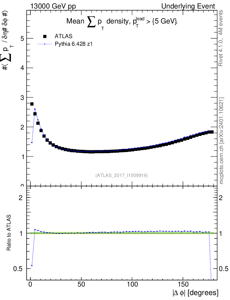 Lines: data, pythia6 6.428 z1 |