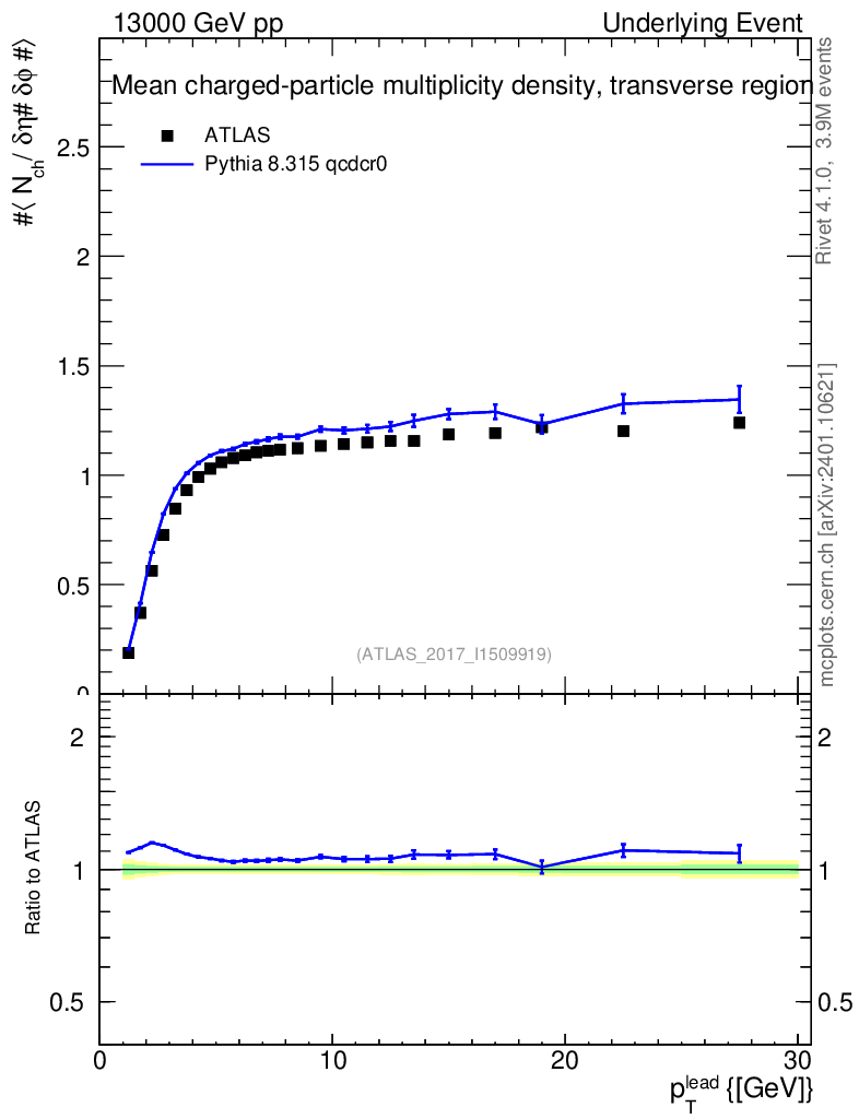 Lines: data, pythia8 8.315 qcdcr0 |