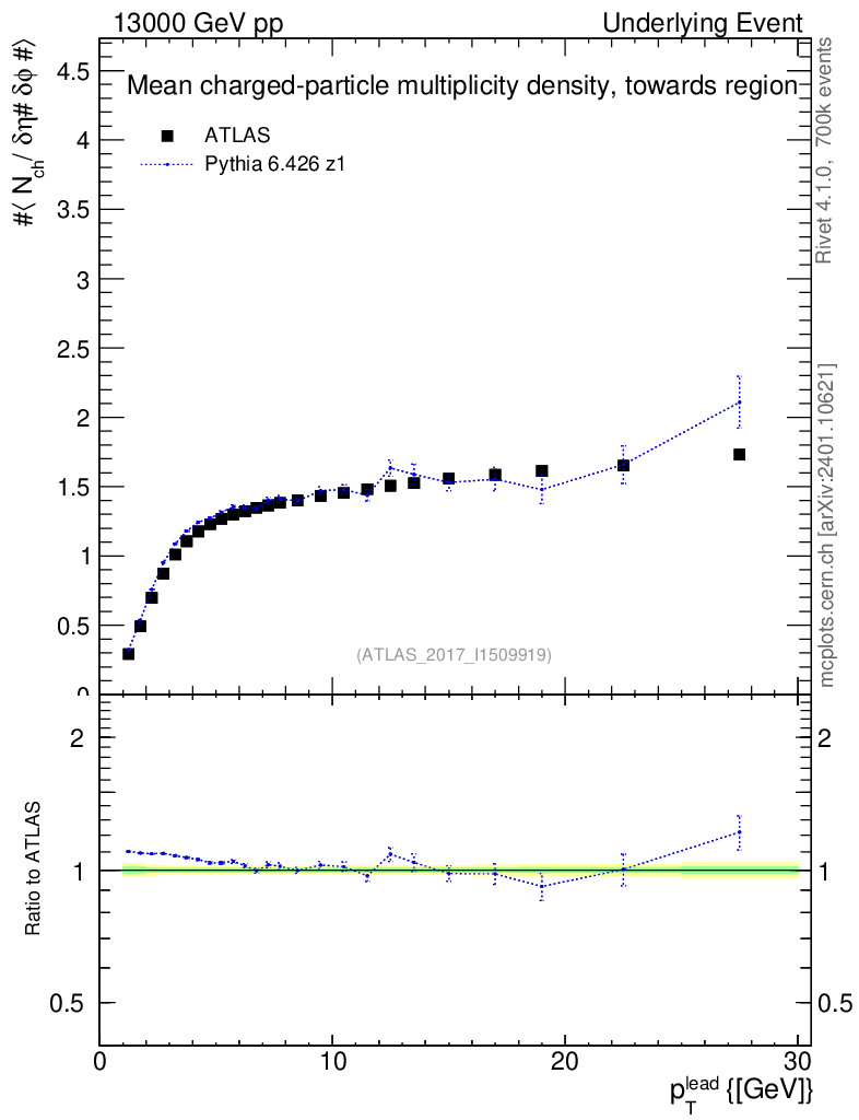 Lines: data, pythia6 6.426 z1 |