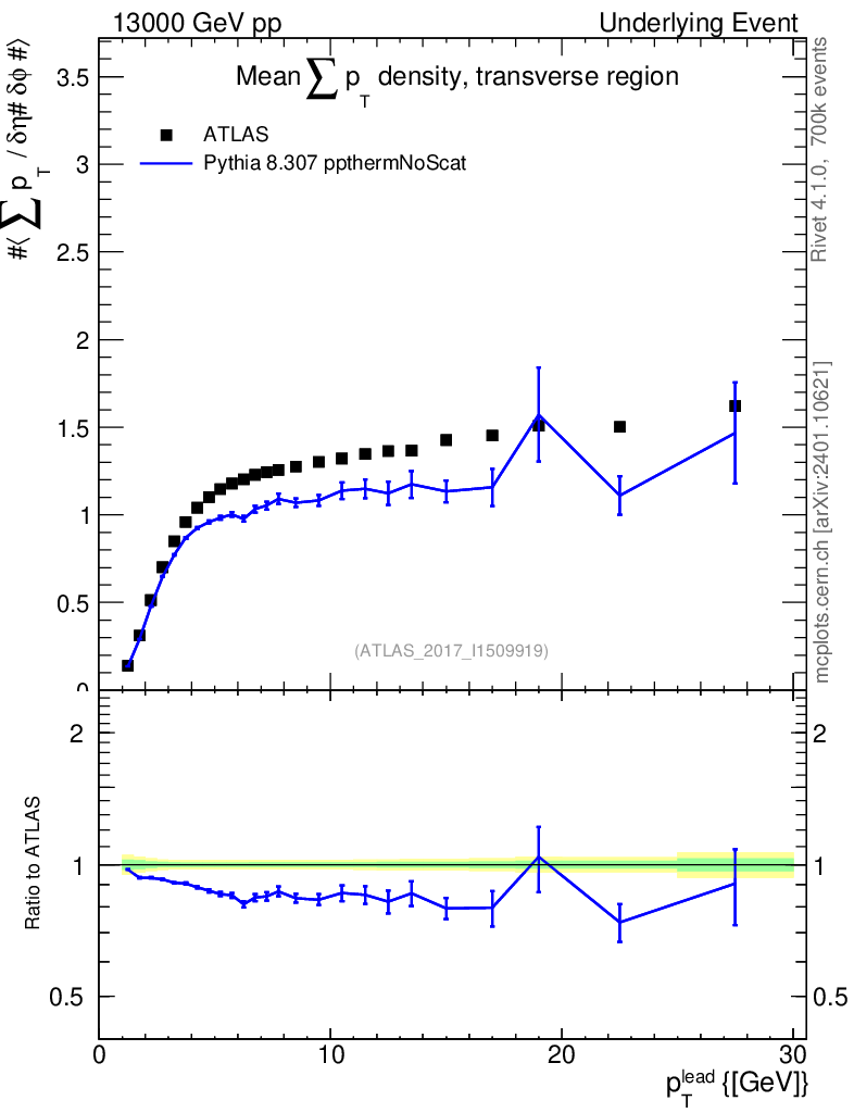 Lines: data, pythia8 8.307 ppthermNoScat |