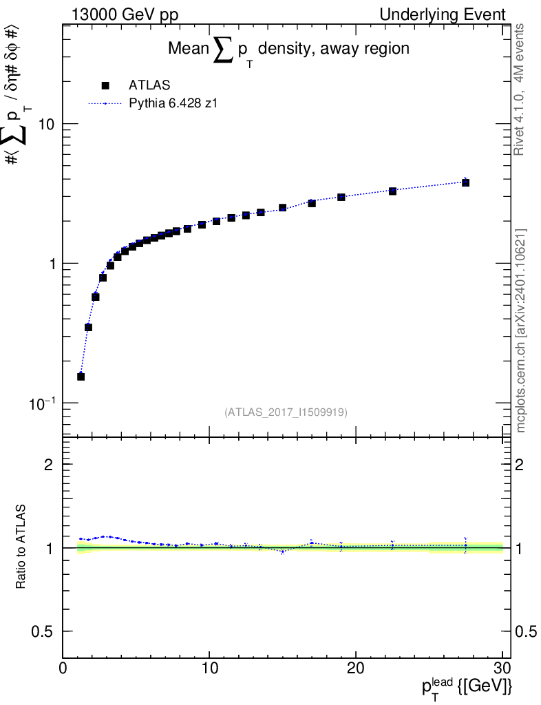 Lines: data, pythia6 6.428 z1 |