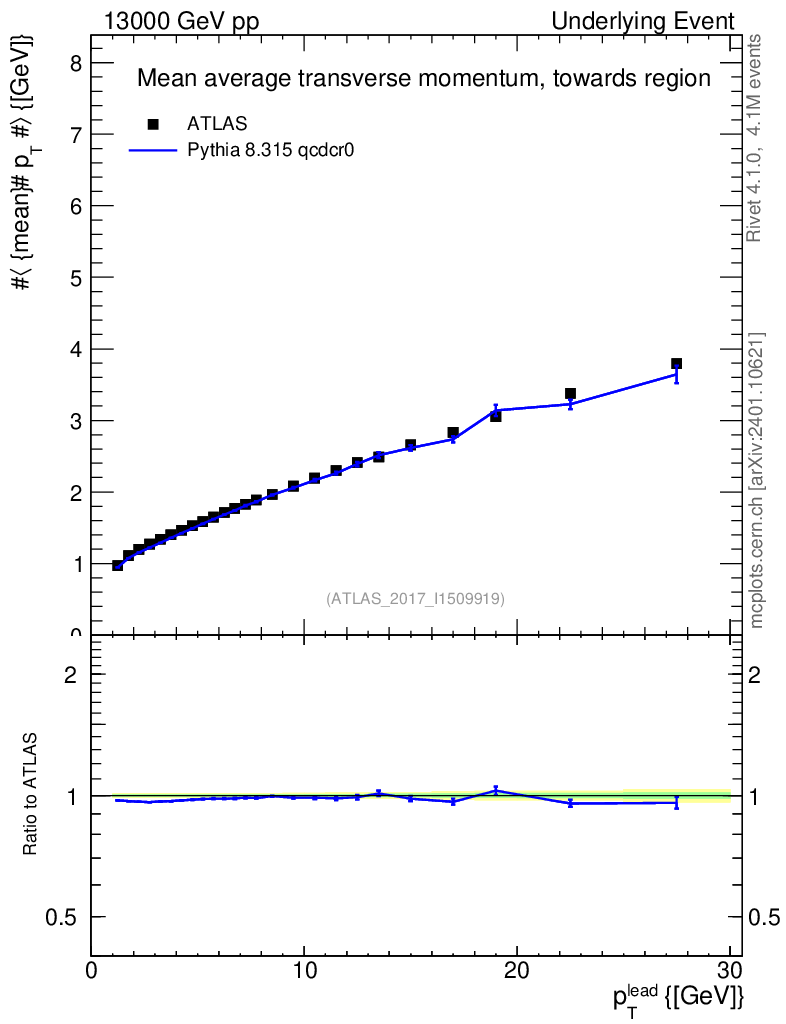 Lines: data, pythia8 8.315 qcdcr0 |