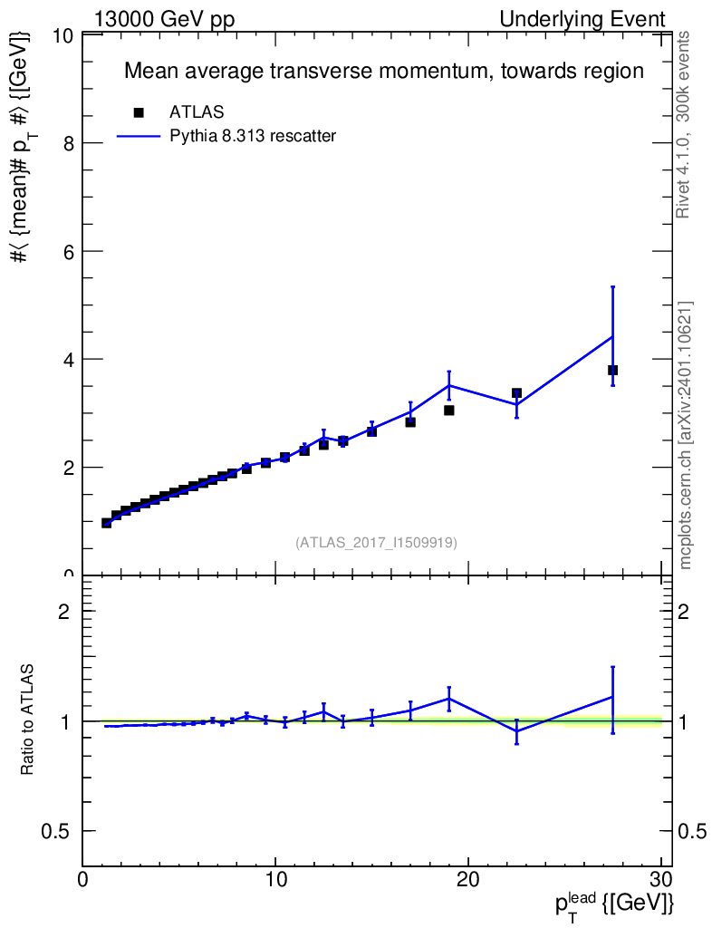 Lines: data, pythia8 8.313 rescatter |