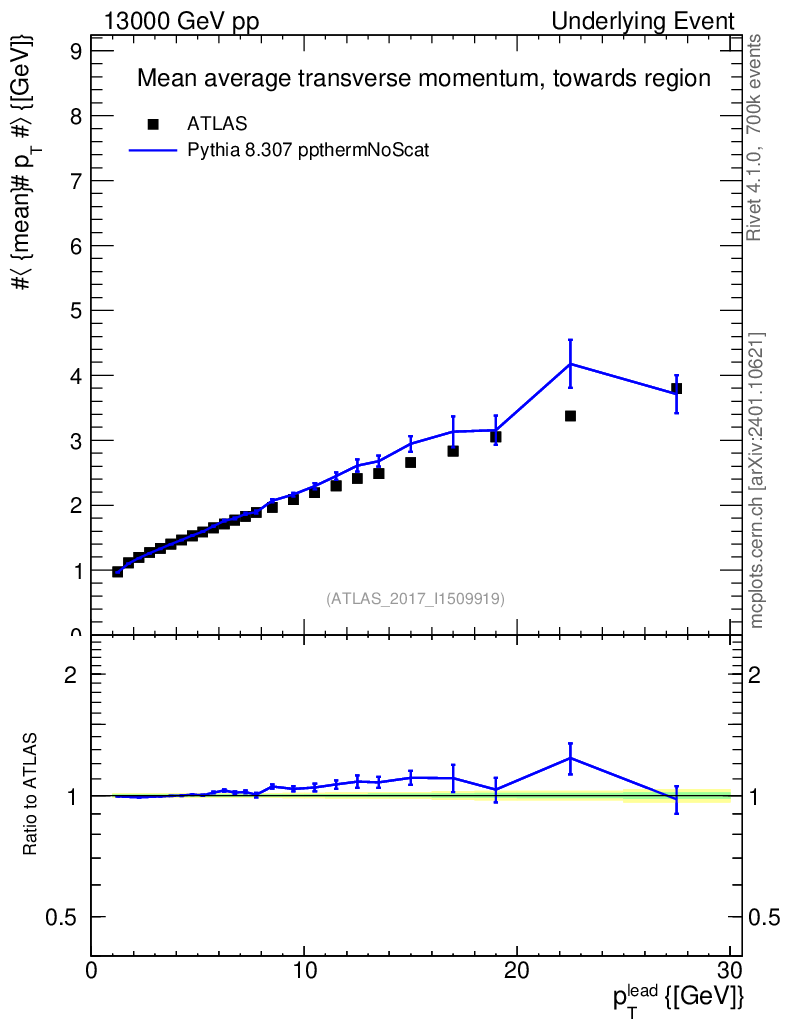 Lines: data, pythia8 8.307 ppthermNoScat |