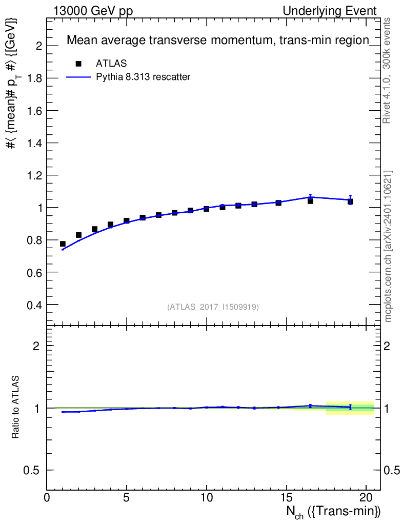 Lines: data, pythia8 8.313 rescatter |