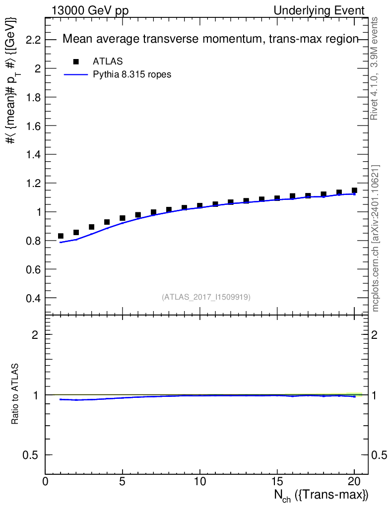 Lines: data, pythia8 8.315 ropes |