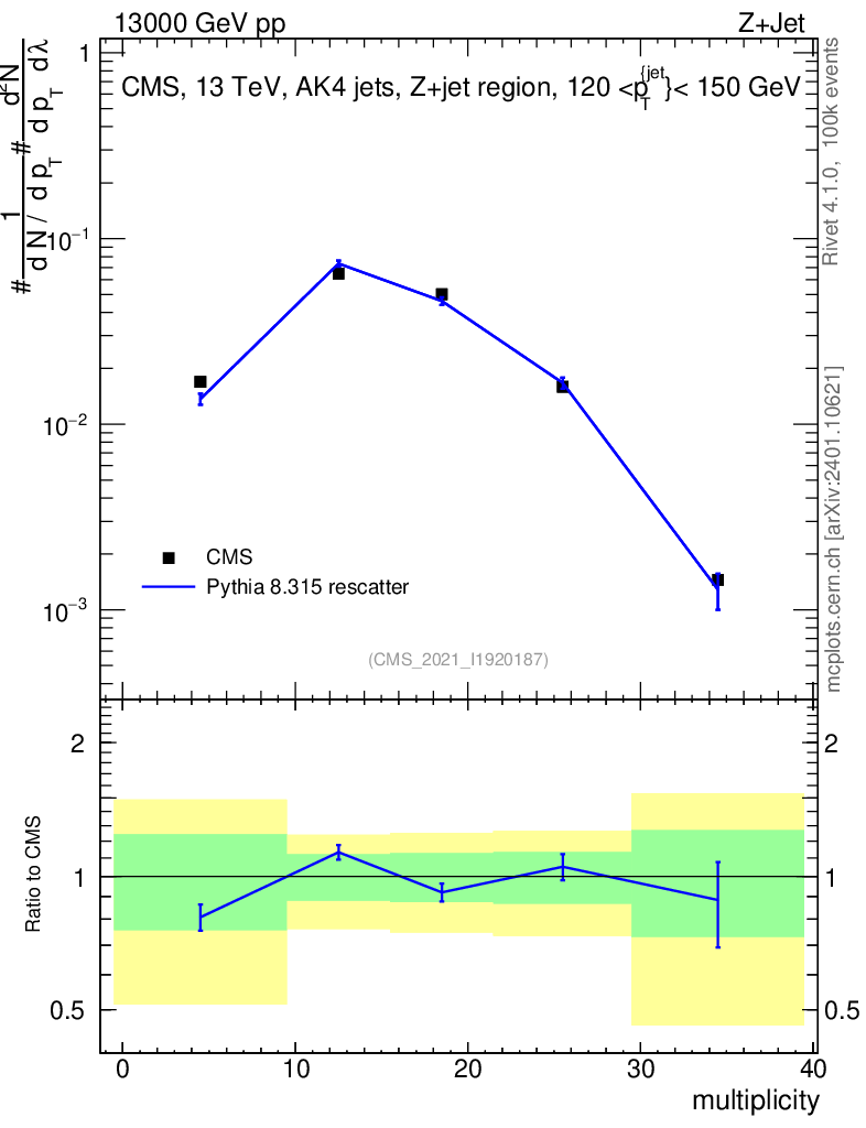 Lines: data, pythia8 8.315 rescatter |