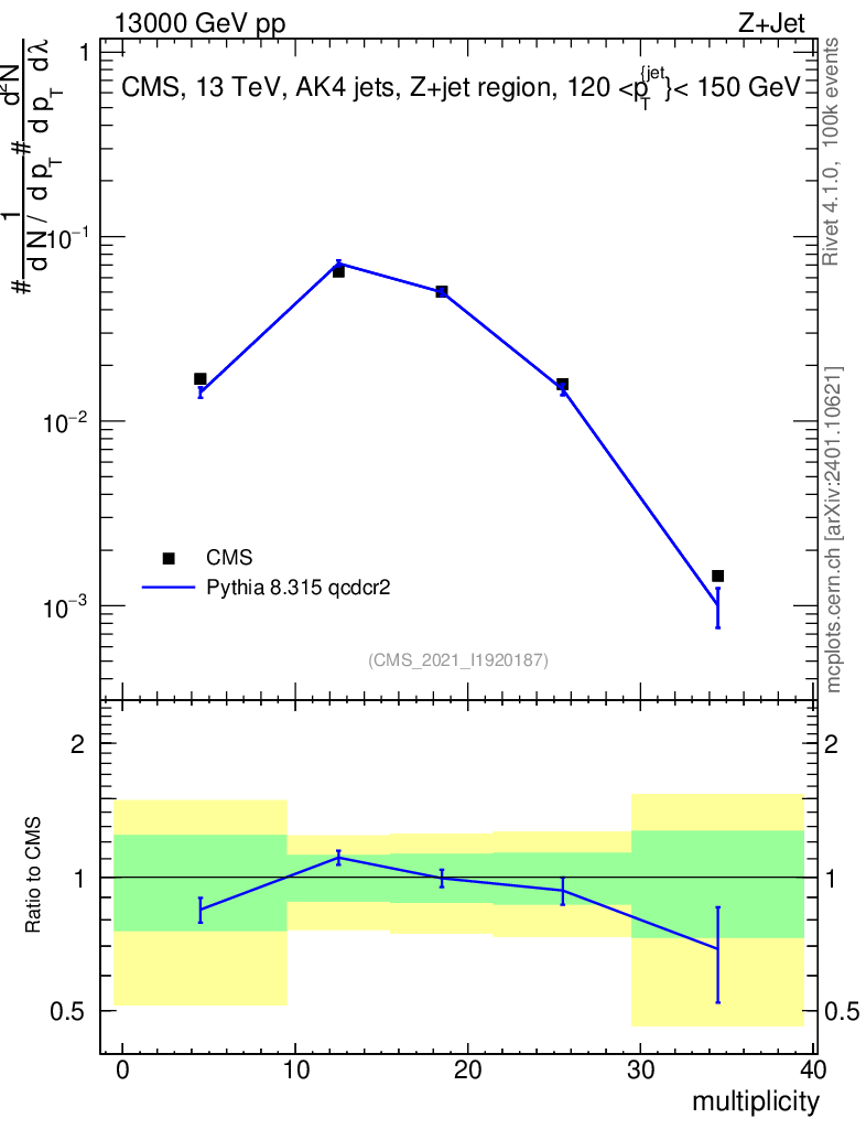 Lines: data, pythia8 8.315 qcdcr2 |