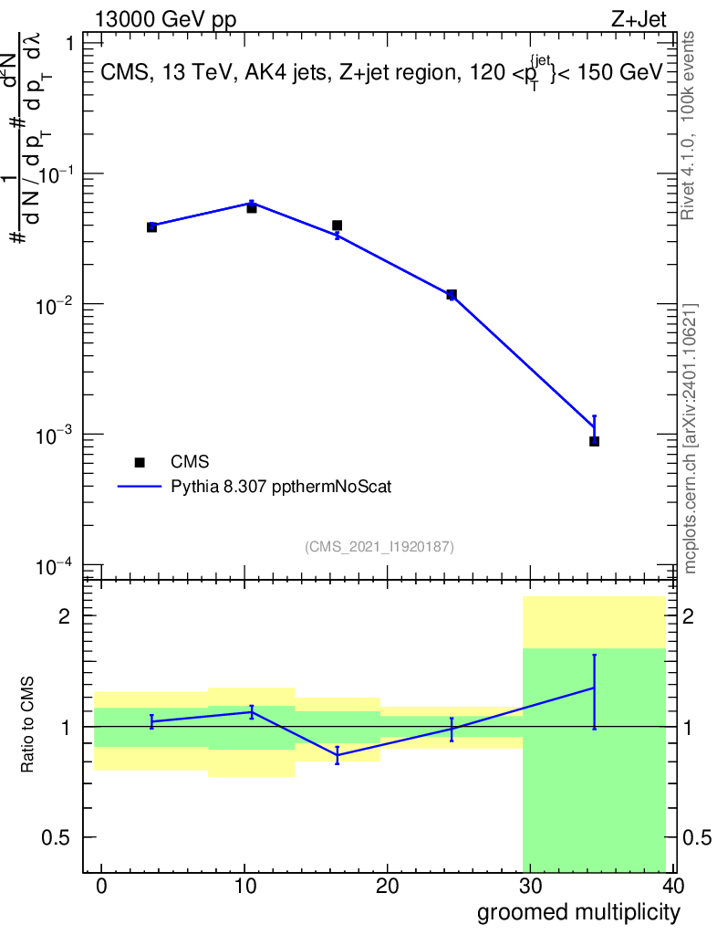 Lines: data, pythia8 8.307 ppthermNoScat |