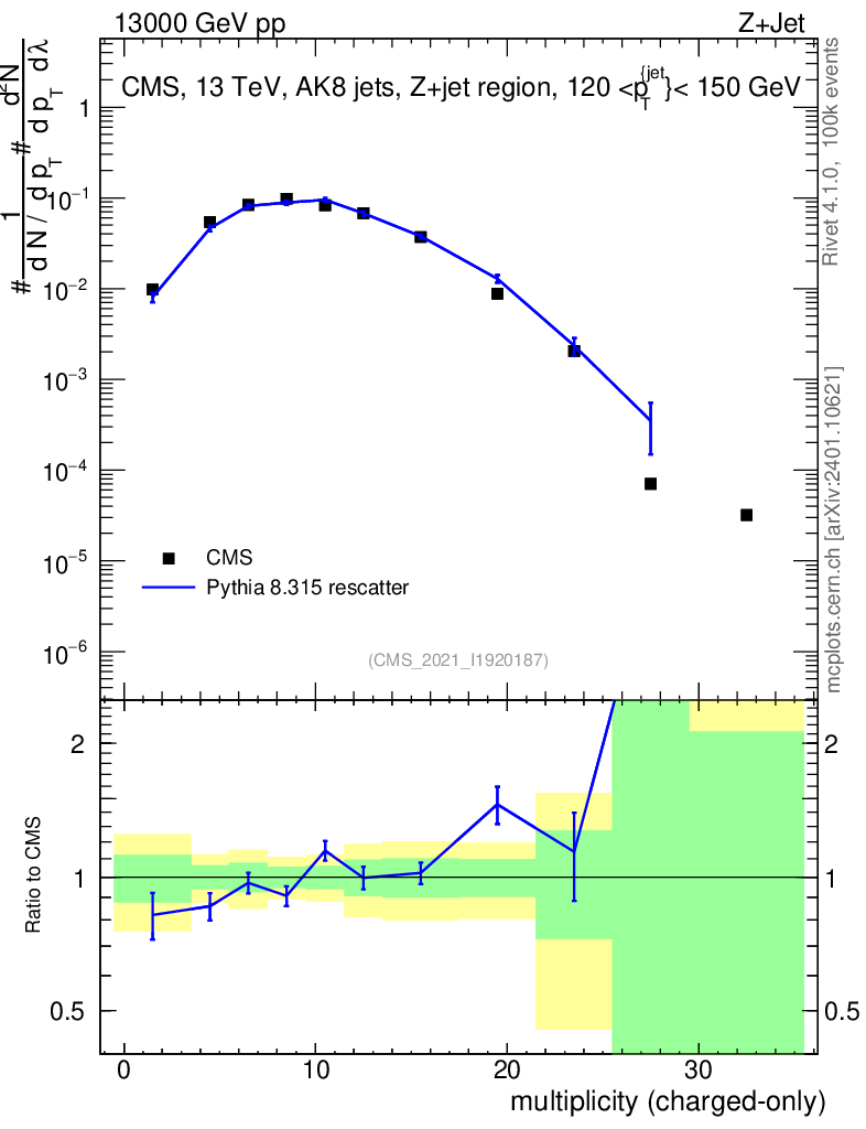 Lines: data, pythia8 8.315 rescatter |