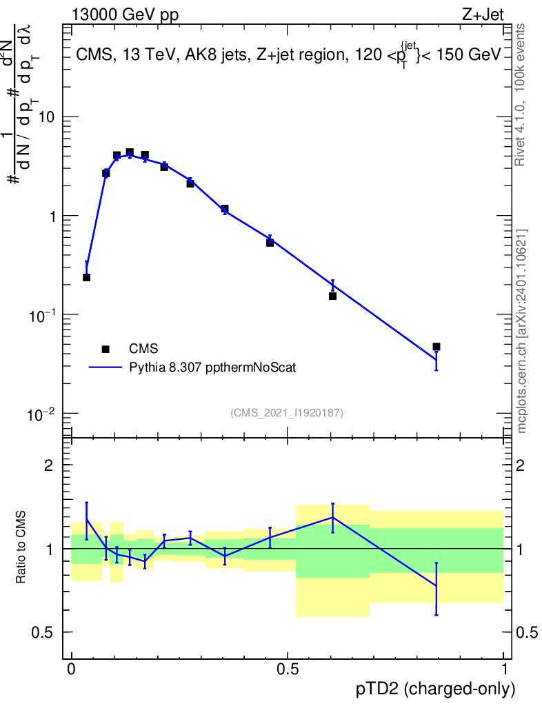 Lines: data, pythia8 8.307 ppthermNoScat |