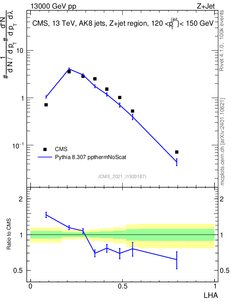 Lines: data, pythia8 8.307 ppthermNoScat |