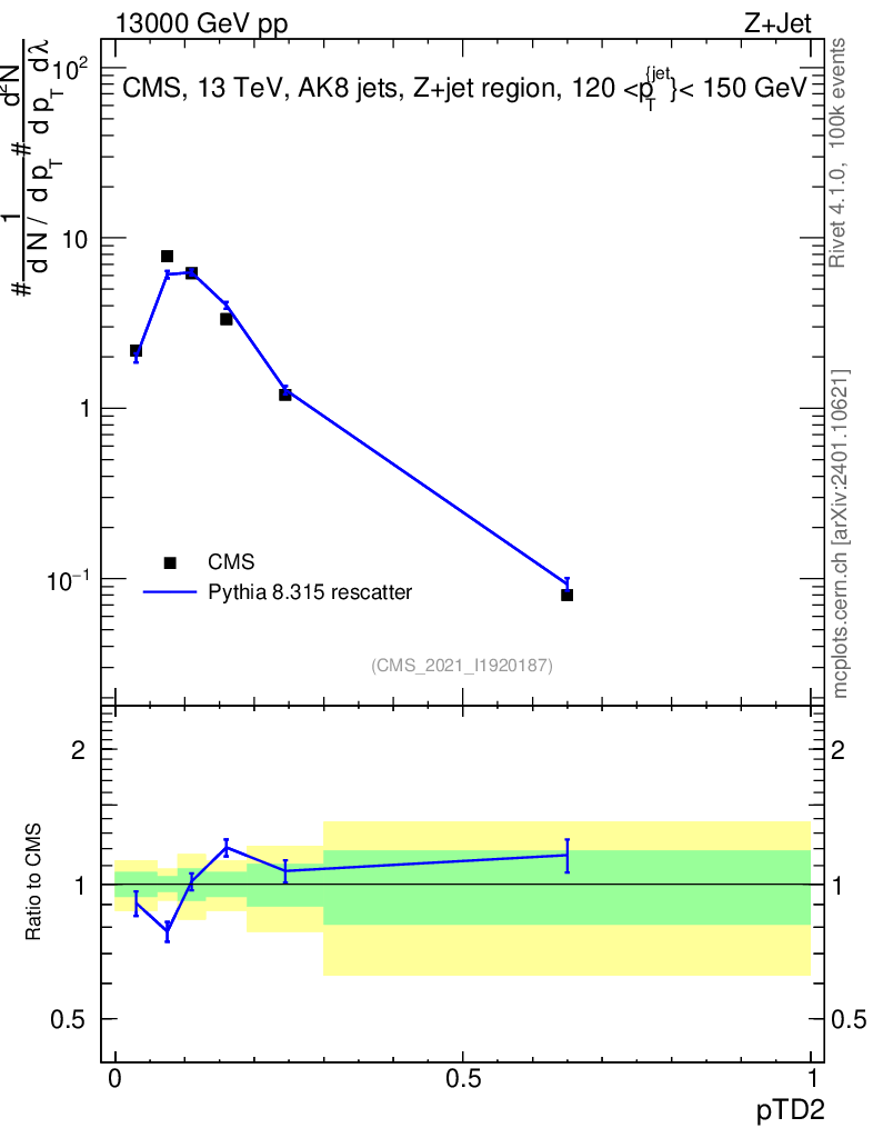 Lines: data, pythia8 8.315 rescatter |