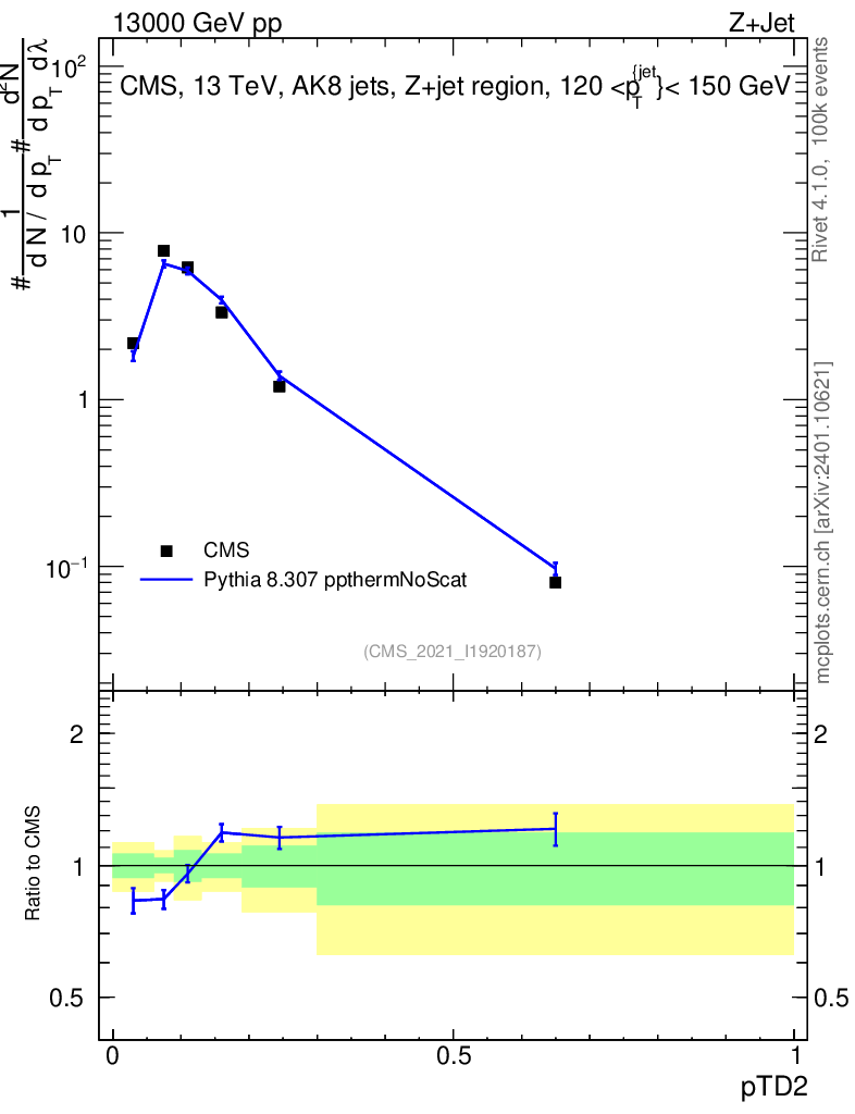 Lines: data, pythia8 8.307 ppthermNoScat |