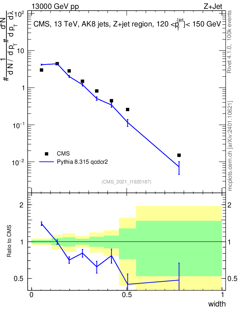 Lines: data, pythia8 8.315 qcdcr2 |