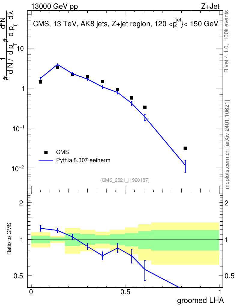Lines: data, pythia8 8.307 eetherm |
