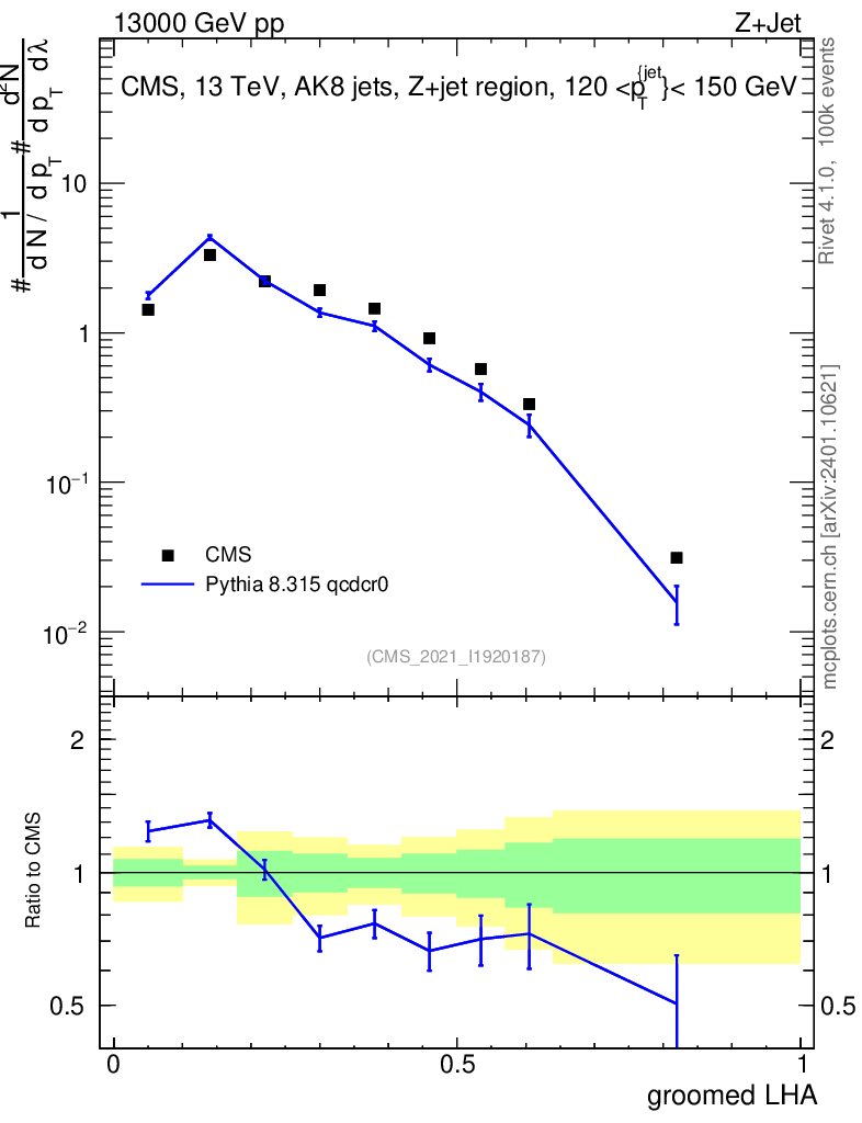 Lines: data, pythia8 8.315 qcdcr0 |