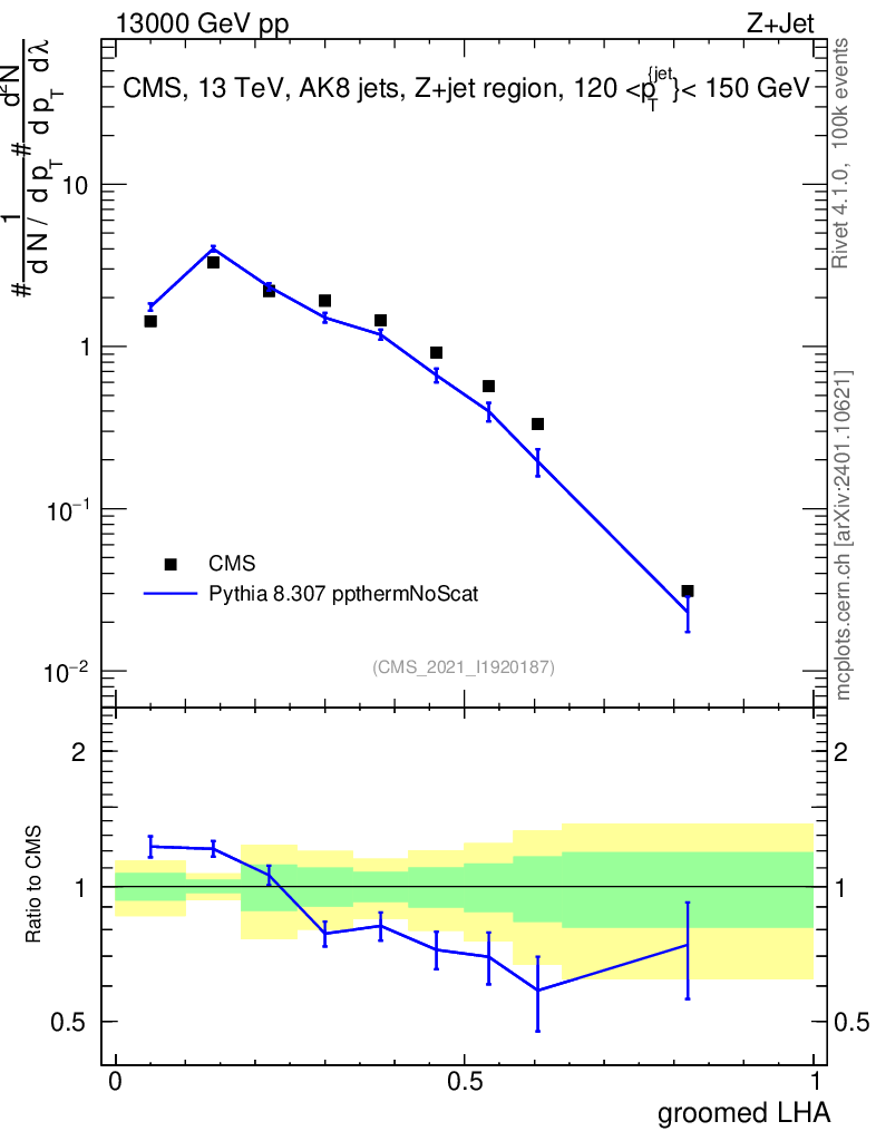 Lines: data, pythia8 8.307 ppthermNoScat |
