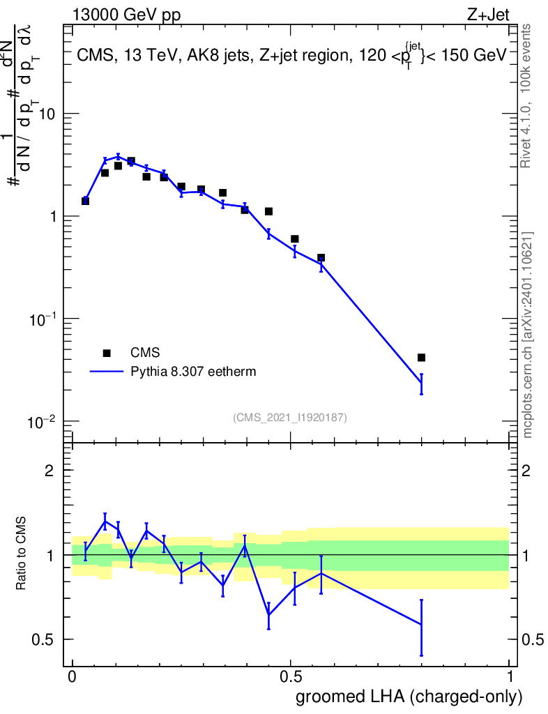 Lines: data, pythia8 8.307 eetherm |