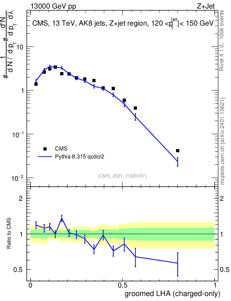 Lines: data, pythia8 8.315 qcdcr2 |