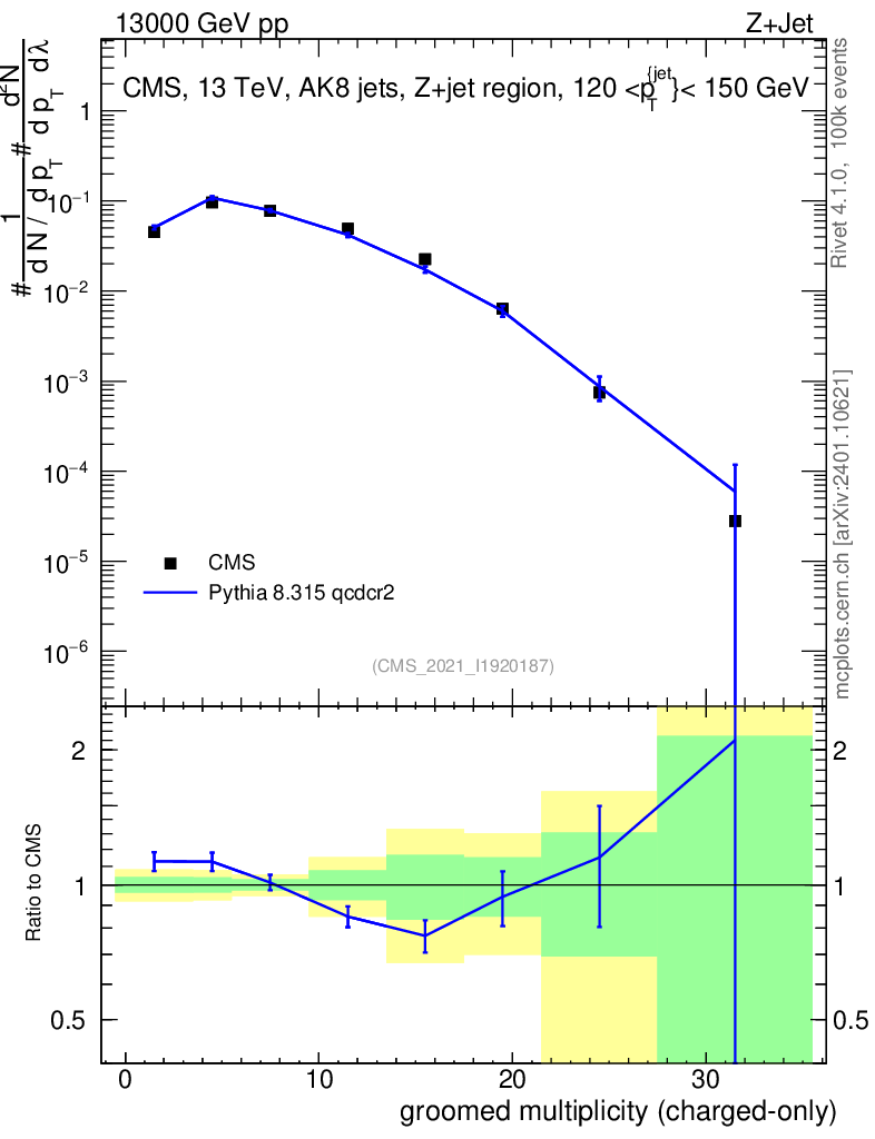 Lines: data, pythia8 8.315 qcdcr2 |