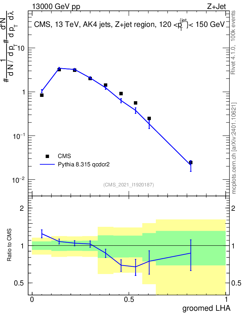 Lines: data, pythia8 8.315 qcdcr2 |