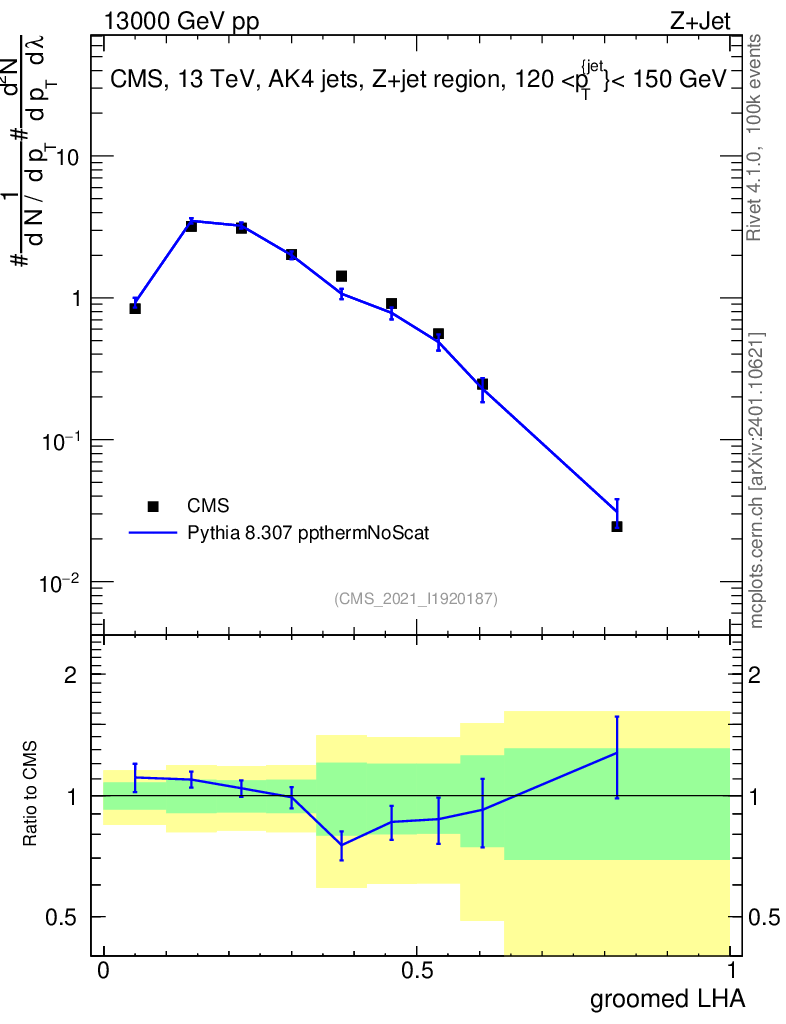 Lines: data, pythia8 8.307 ppthermNoScat |