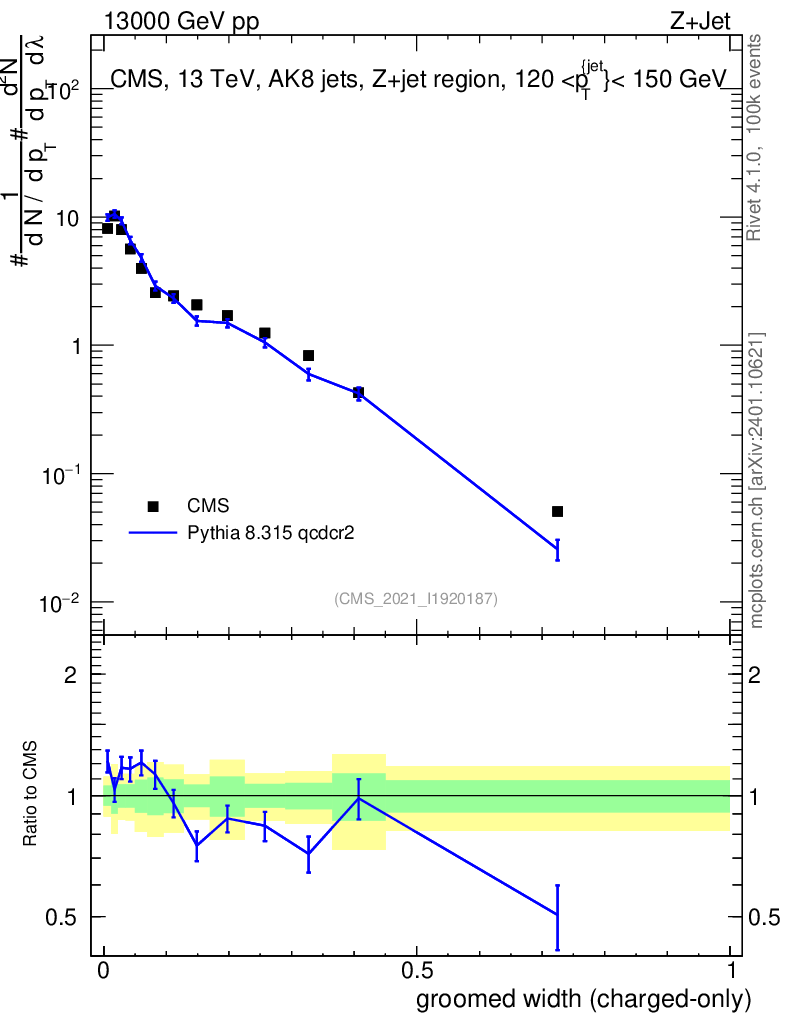 Lines: data, pythia8 8.315 qcdcr2 |