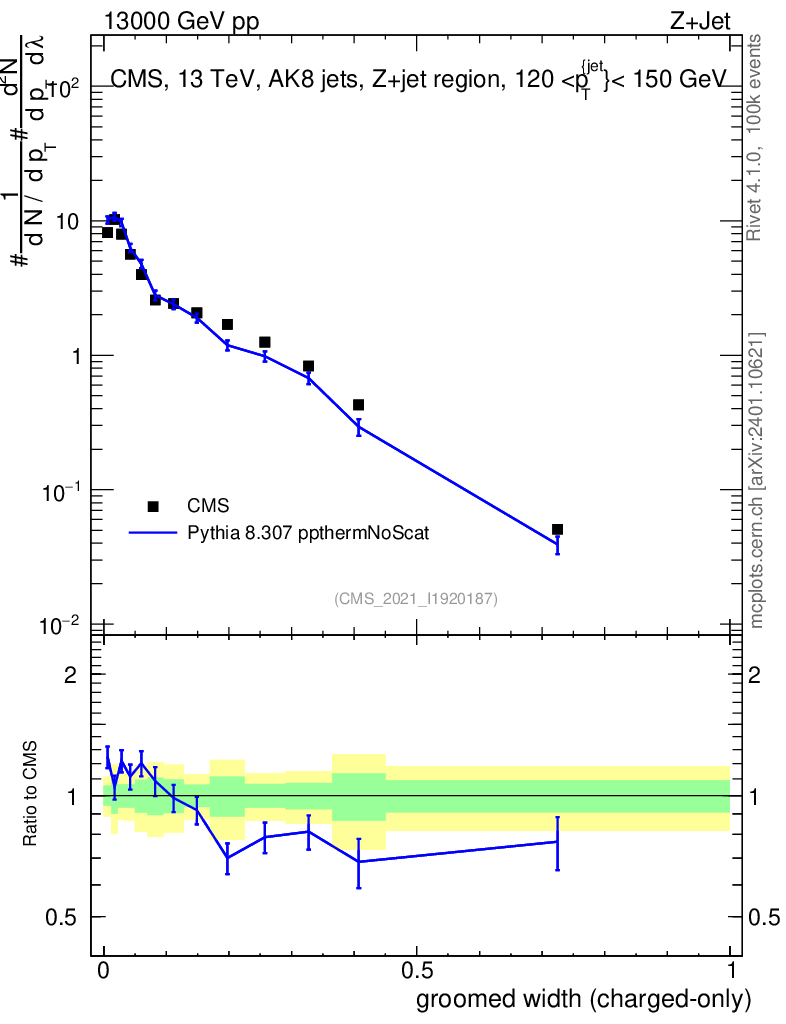 Lines: data, pythia8 8.307 ppthermNoScat |