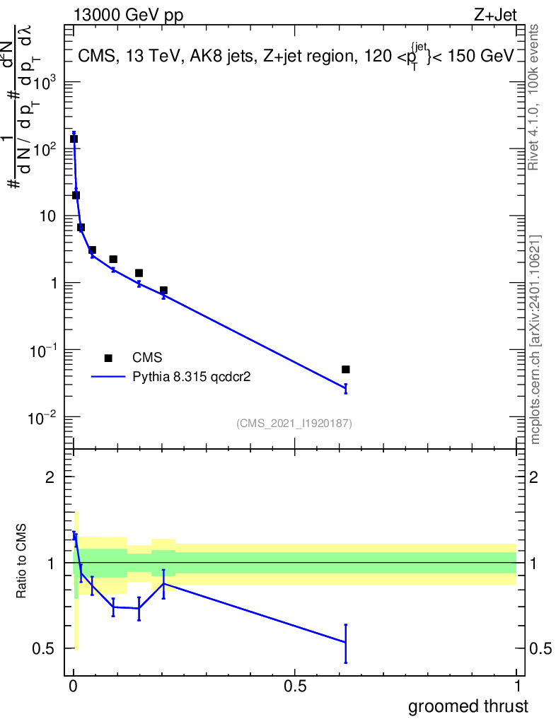 Lines: data, pythia8 8.315 qcdcr2 |