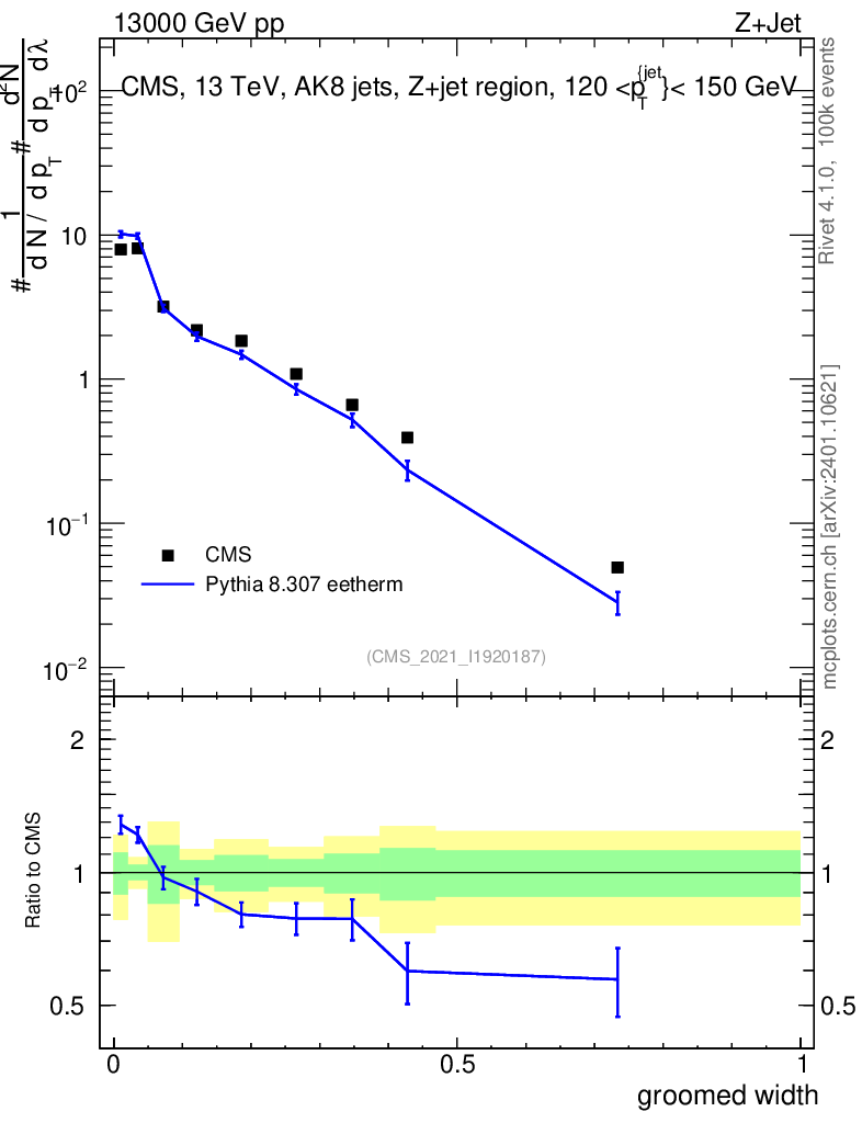 Lines: data, pythia8 8.307 eetherm |
