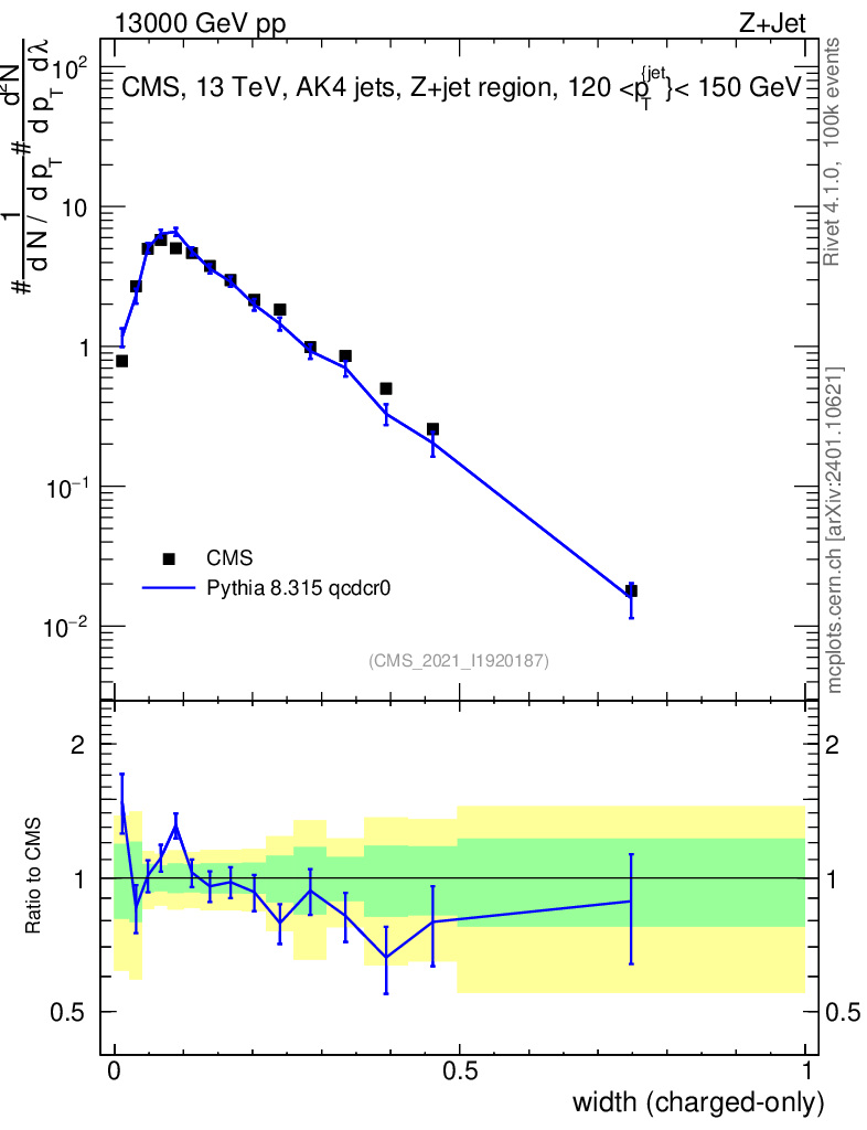 Lines: data, pythia8 8.315 qcdcr0 |