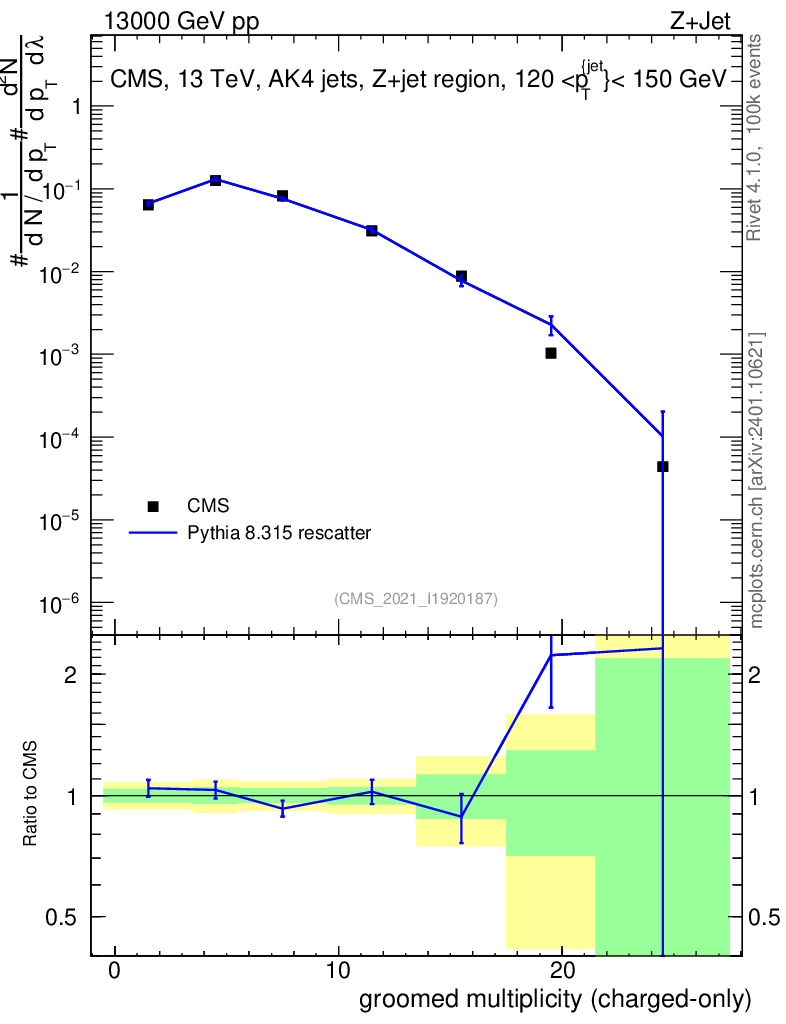 Lines: data, pythia8 8.315 rescatter |
