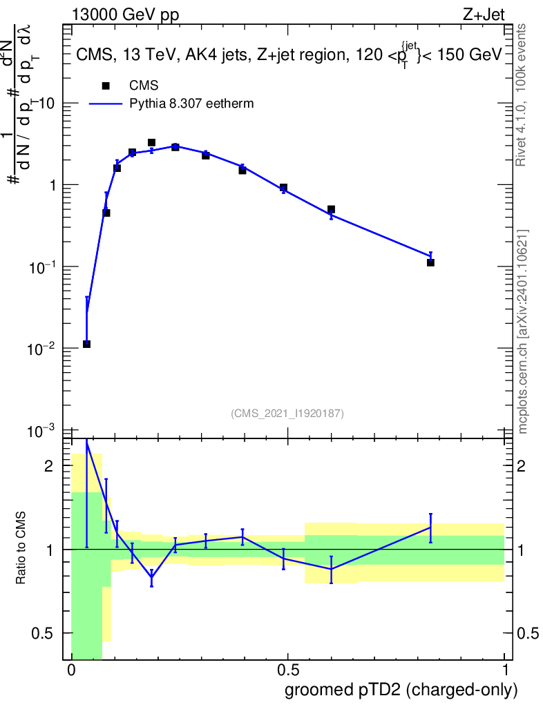 Lines: data, pythia8 8.307 eetherm |