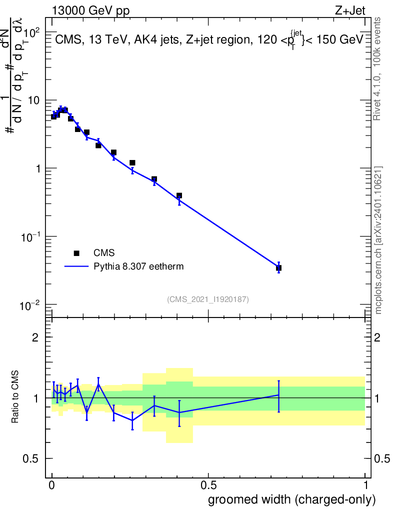 Lines: data, pythia8 8.307 eetherm |